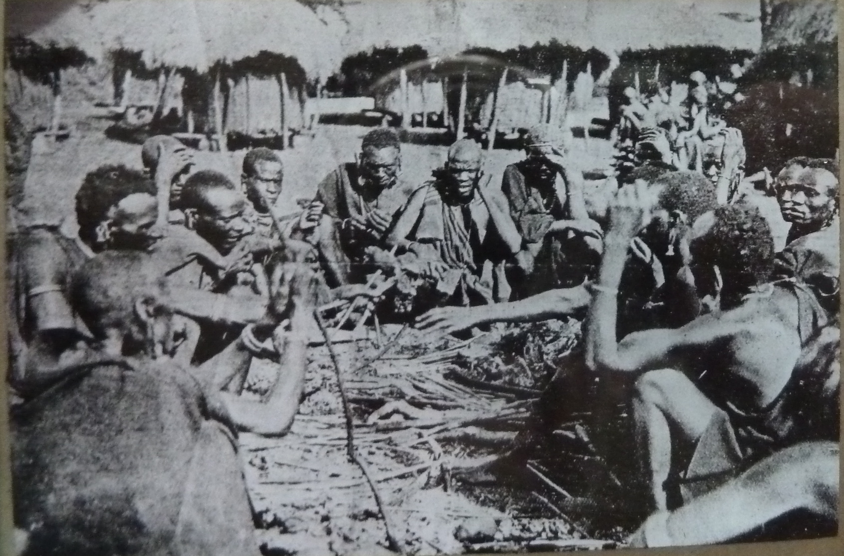 A missionary lantern slide depicting a sitting of the kiama, the governing council in the vicinity of Tumutumu, central Kenya, about 1920 (courtesy of the National Museum of Kenya archives). This is the only photograph that I know of depicting Gikuyu elders in their deliberations. The sticks that the men hold were used to add emphasis to a point made in discourse.